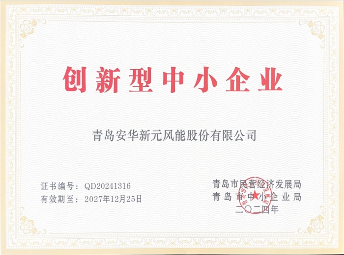 創(chuàng)新型中小企業(yè)一般是指具有較健全的創(chuàng)新機(jī)制,在產(chǎn)品、技術(shù)、管理、模式等方面創(chuàng)新能力強(qiáng)、專注細(xì)分市場(chǎng)、成長(zhǎng)性好的中小企業(yè),具有較高的專業(yè)化水平、較強(qiáng)的創(chuàng)新能力和發(fā)展?jié)摿Α4舜卧u(píng)選是根據(jù)工信部《優(yōu)質(zhì)中小企業(yè)梯度培育管理暫行辦法》《青島市優(yōu)質(zhì)中小企業(yè)梯度培育管理實(shí)施細(xì)則》和《關(guān)于組織開(kāi)展2024年第二批創(chuàng)新型中小企業(yè)評(píng)價(jià)工作的通知》要求,經(jīng)過(guò)企業(yè)申報(bào)、嶗山區(qū)初審?fù)扑]、第三方機(jī)構(gòu)審核和社會(huì)公示等程序,最終青島安華新元風(fēng)能股份有限公司成功入選。